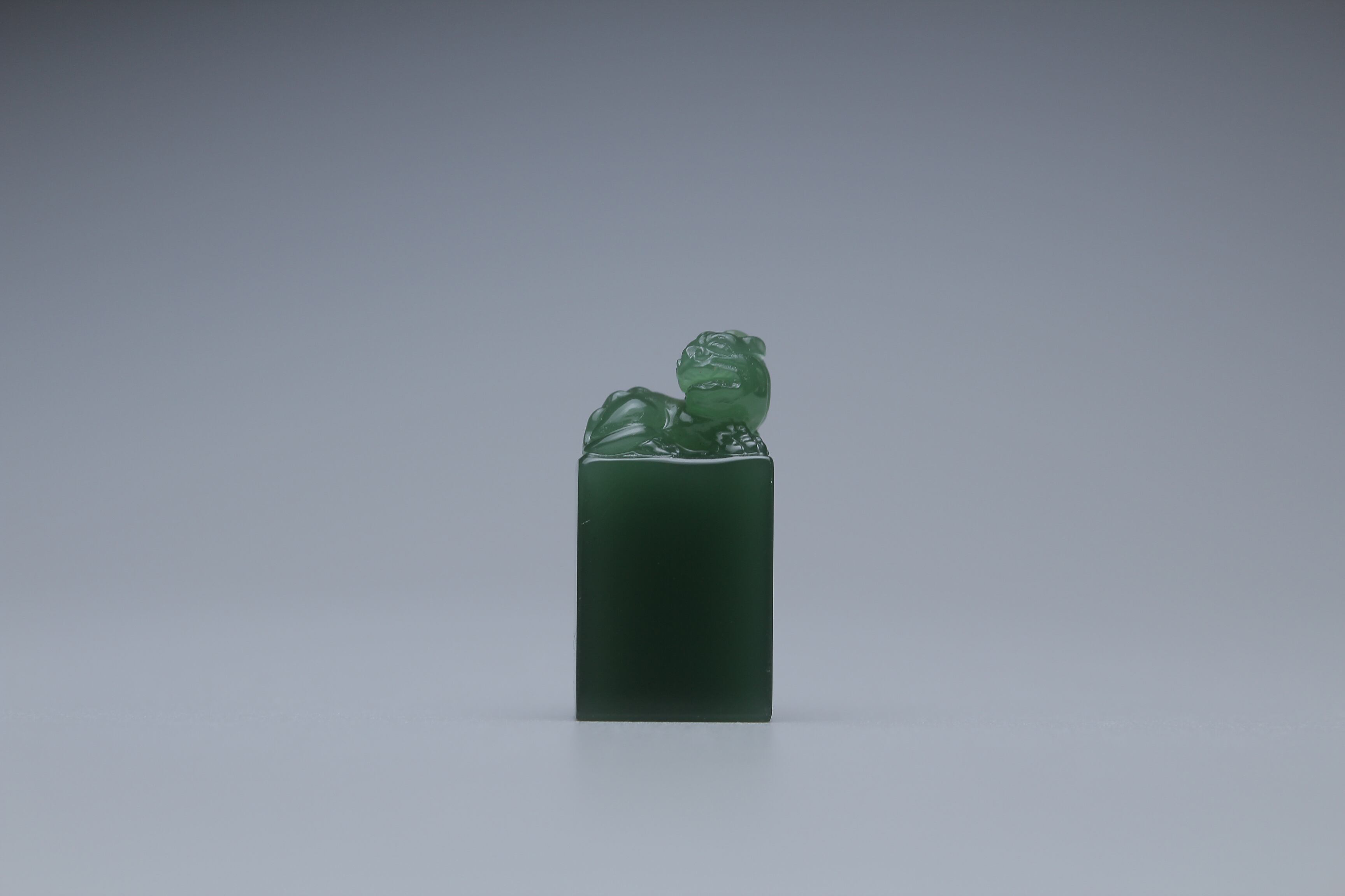商品名: L05114 最高級西安緑石印材 古獣印鈕 細工 彫刻 書道 篆刻 美術品